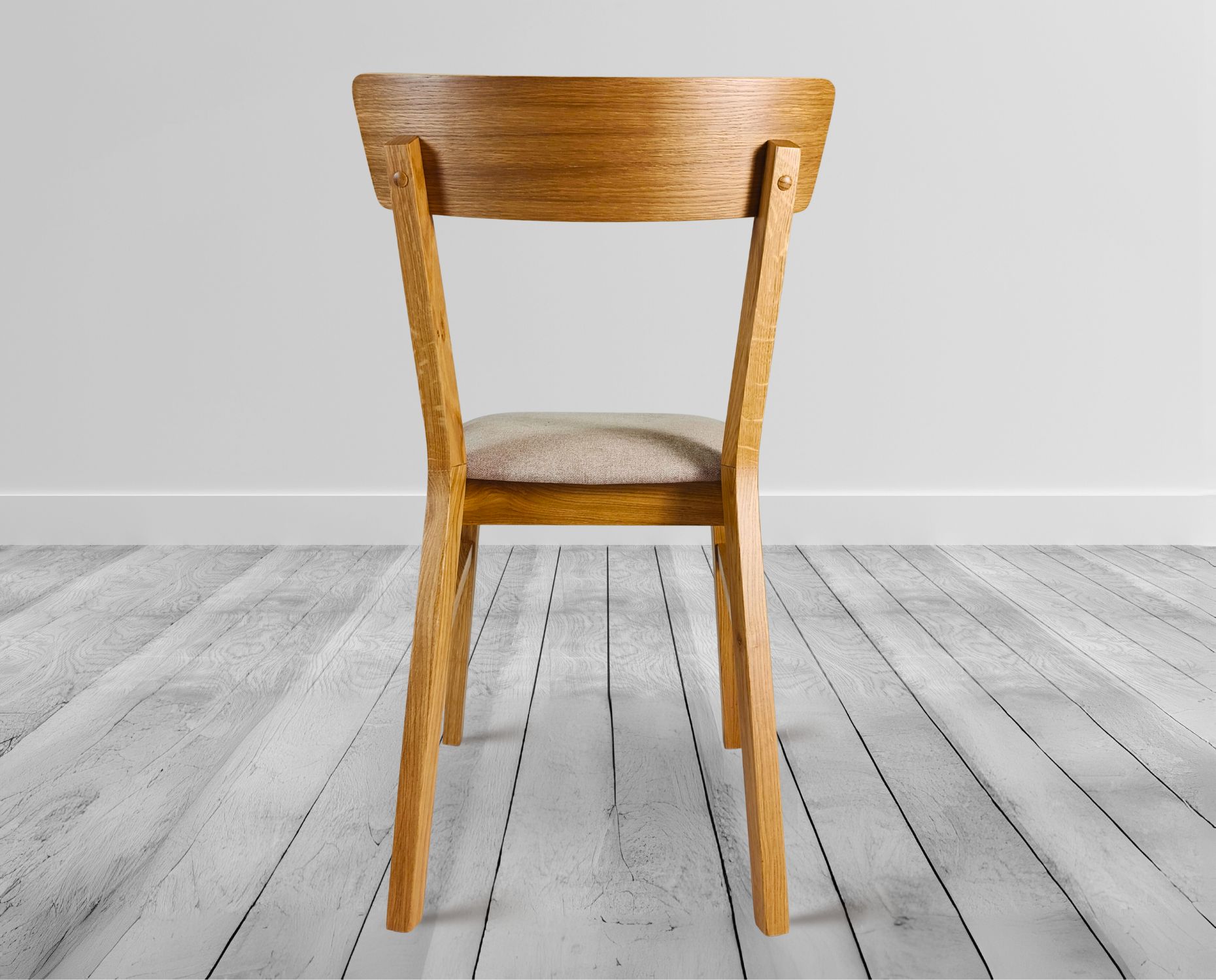 Uwaga: Ze względu na naturalny charakter drewna dębowego, każde krzesło posiada unikalny rysunek słojów – jest to cecha naturalna, której nie da się powielić w identyczny sposób w każdej sztuce.