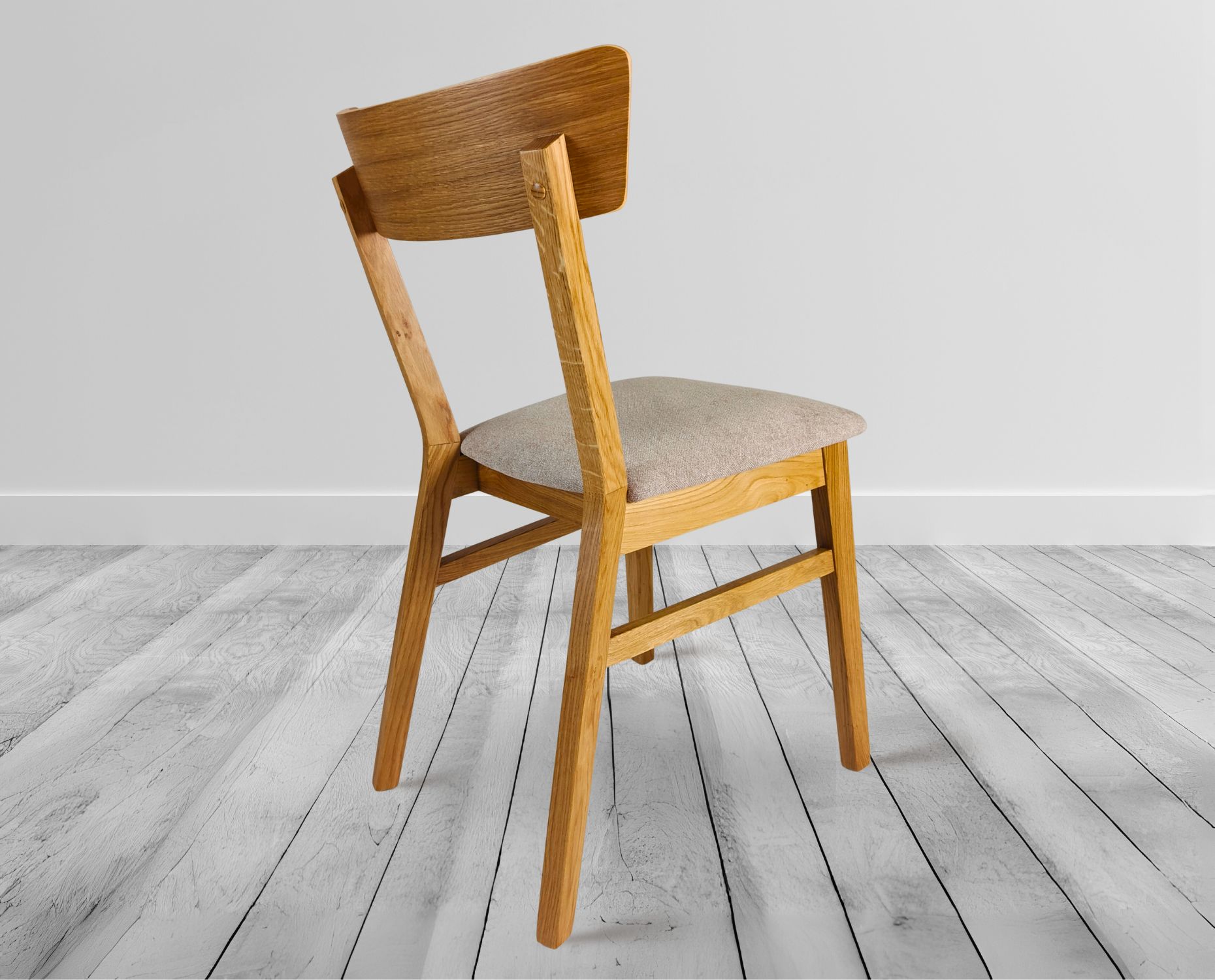 Krzesło Oslo Drewniane krzesło o lekkiej, ponadczasowej formie i wygodnym tapicerowanym siedzisku, stworzone z myślą o wnętrzach, w których liczy się naturalność, harmonia i codzienny komfort użytkowania.